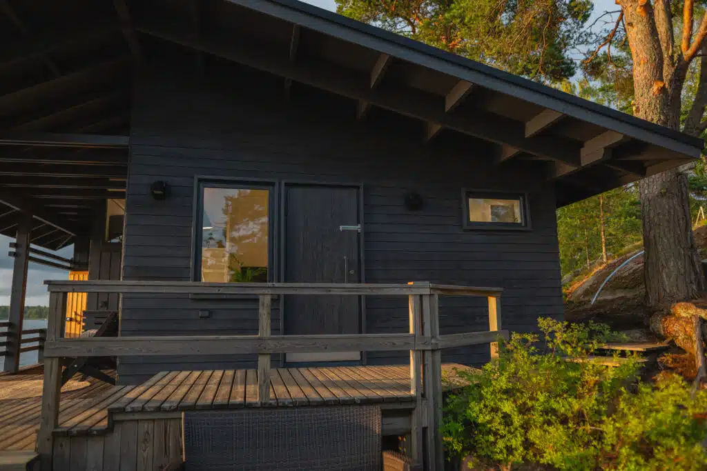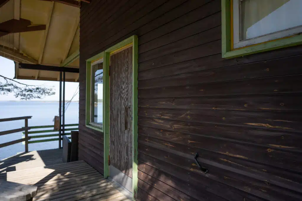 Toteutimme mökin ulkomaalauksen osana isoa remonttia. Mökin seinien maalipinta oli kulunut ja haalistunut auringossa, joten se kaipasi kipeästi uutta maalia.