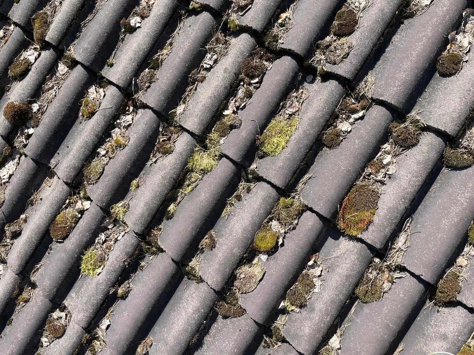 Tiilikaton pintaan kertyy eloperäistä ainesta, joka on otollinen kasvupaikka sammalelle.