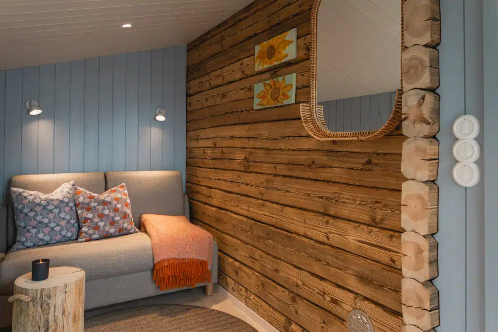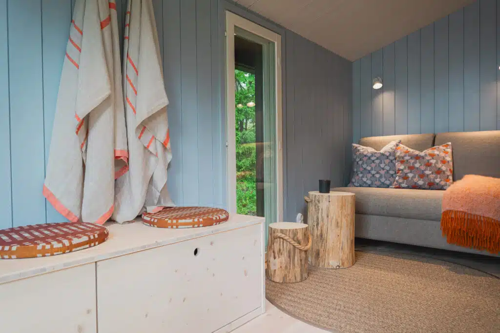 Siskosten Minnan ja Annen mökillä sijaitseva rantasauna kaipasi piristystä ja päivitystä. Sisustussuunnittelija Maru Hautala suunnitteli muutoksia saunamökkiin, jotta siitä saatiin siskosten toiveiden mukainen.