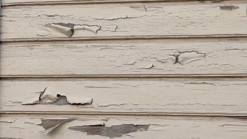 Lohkeileva maali seinässä. Lohkeilu voi olla myös paljon pienempää kuin tässä kuvassa. Ei siis kannata odottaa että talosi seinä näyttää yhtä pahalta kuin tämä seinä.