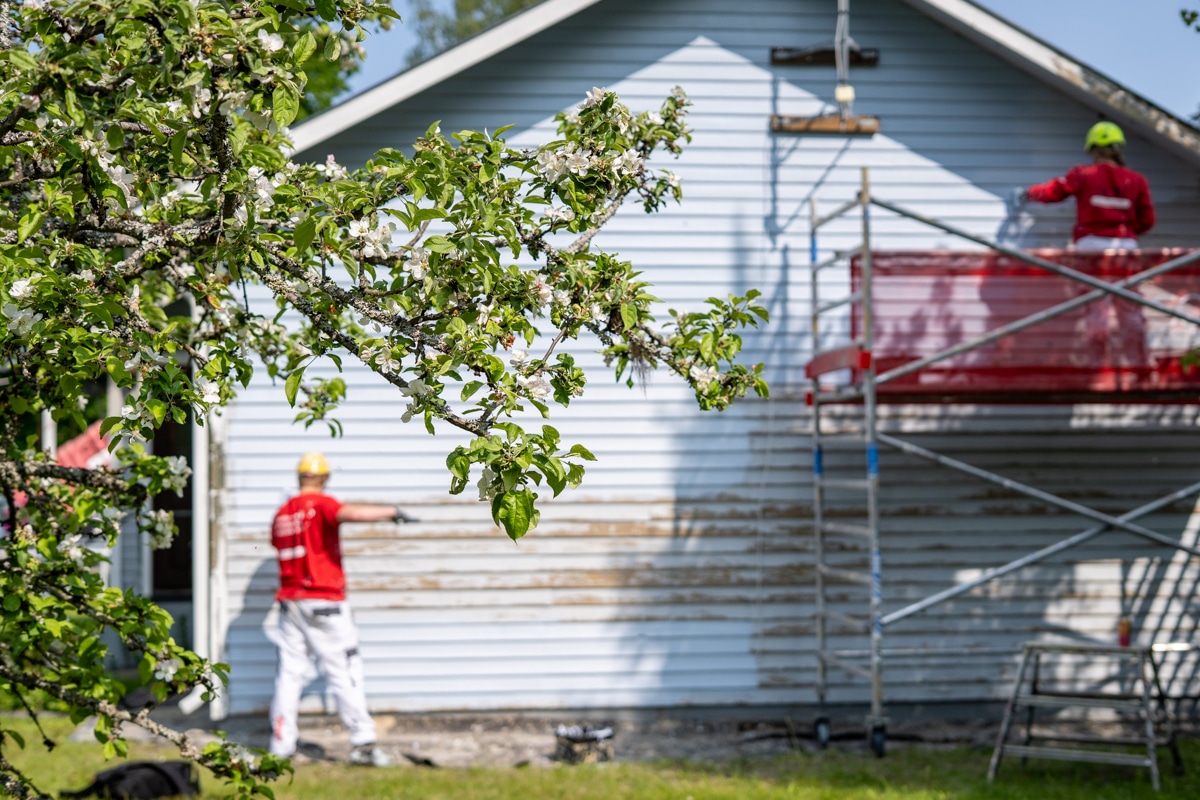 Tarkista erityisesti kuluvat kohdat. Kiinnitä huomiota varjoisiin seinämiin, räystäiden alapuolelle sekä kohtiin, jotka ovat eniten sateen ja auringon armoilla. Näissä paikoissa maalipinta kuluu usein ensimmäisenä.