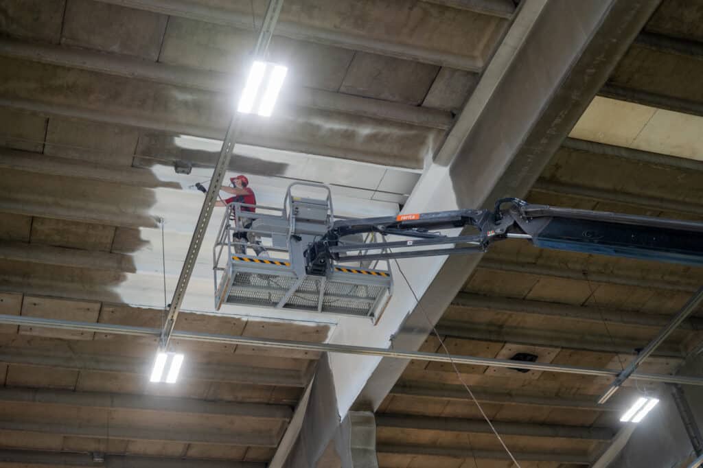 - Puhdas työskentely: Betonipintojen maalaamisessa, erityisesti sisämaalausprojekteissa, pölyn hallinta on kriittistä. Jotta tuotantolinjat pysyisivät puhtaana, käytimme maalaustyön aikana tehokkaita pölynpoistomenetelmiä.