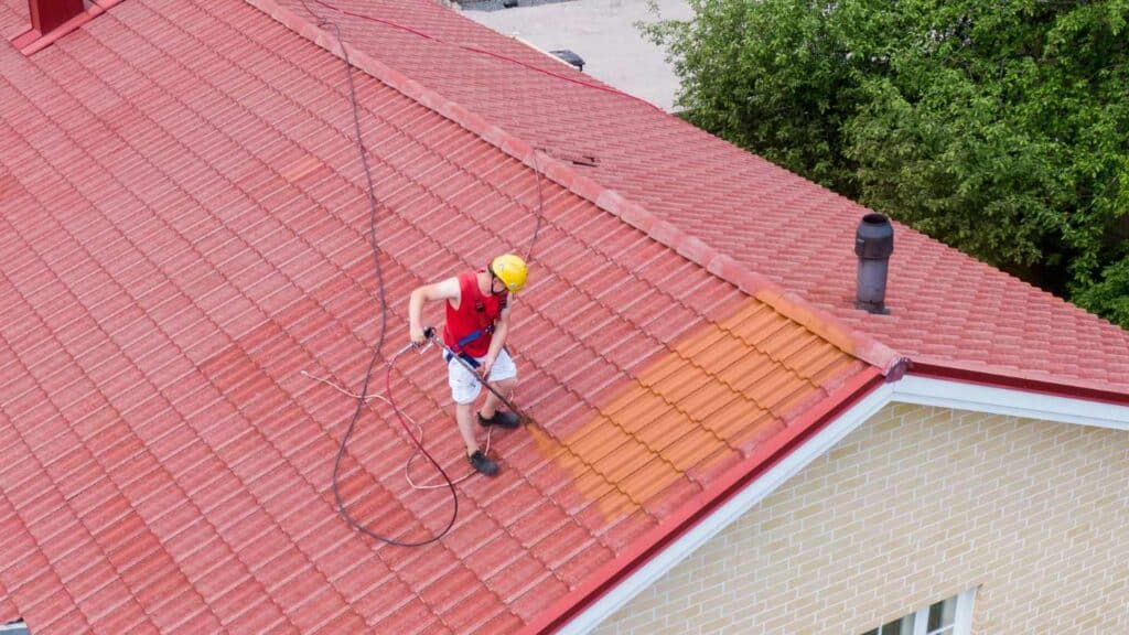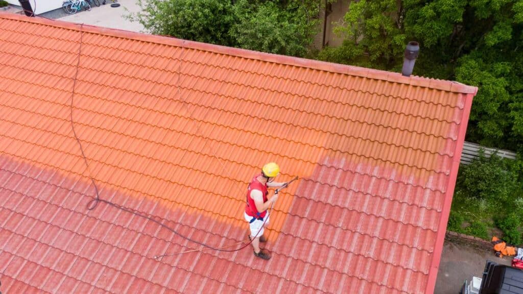 Likainen tiilikatto pestään ennen pinnoitusta. Pesun aikana katolta sataa sammalta ja kuravettä, mikä edellyttää pihan suojaamista. Ennen pesun aloitusta vaihdetaan rikkinäiset kattotiilet ja tarkastetaan vielä katon kunto riittäväksi.